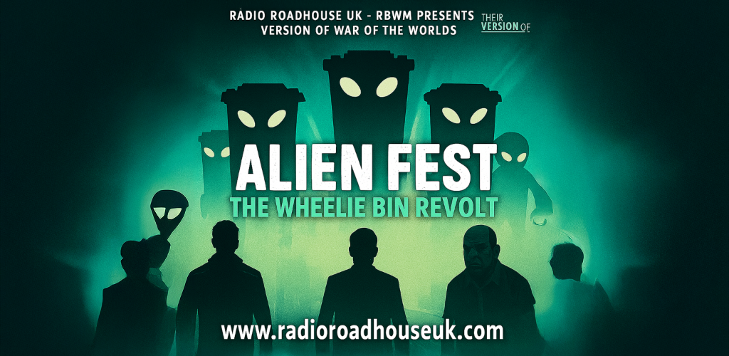 When the bins rise, only three men stand between Windsor and total compost collapse. Noah’s trying diplomacy, Mr. Angry’s building a flamethrower out of kettle parts, and Major Snark just saw a wheelie bin quote Orwell. Alien Fest: The Wheelie Bin Revolt is Radio Roadhouse UK’s gloriously absurd sci-fi showdown — part War of the Worlds, part council bin audit. Expect chanting bins, Morse code threats, and a pigeon in a helmet. Presented by RBWM, it’s the only invasion where recycling etiquette might save your life.